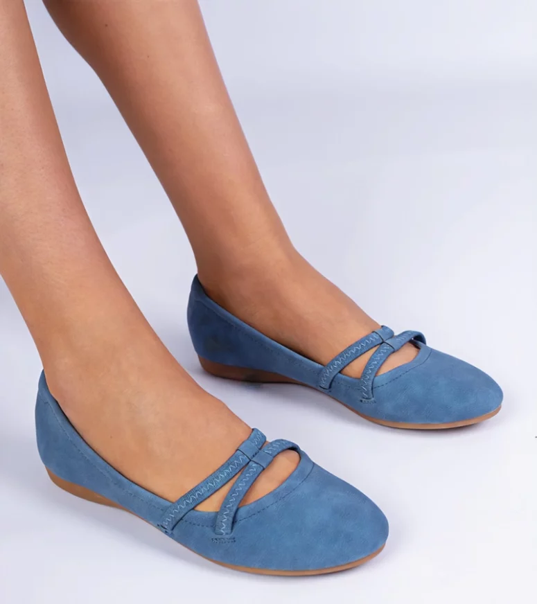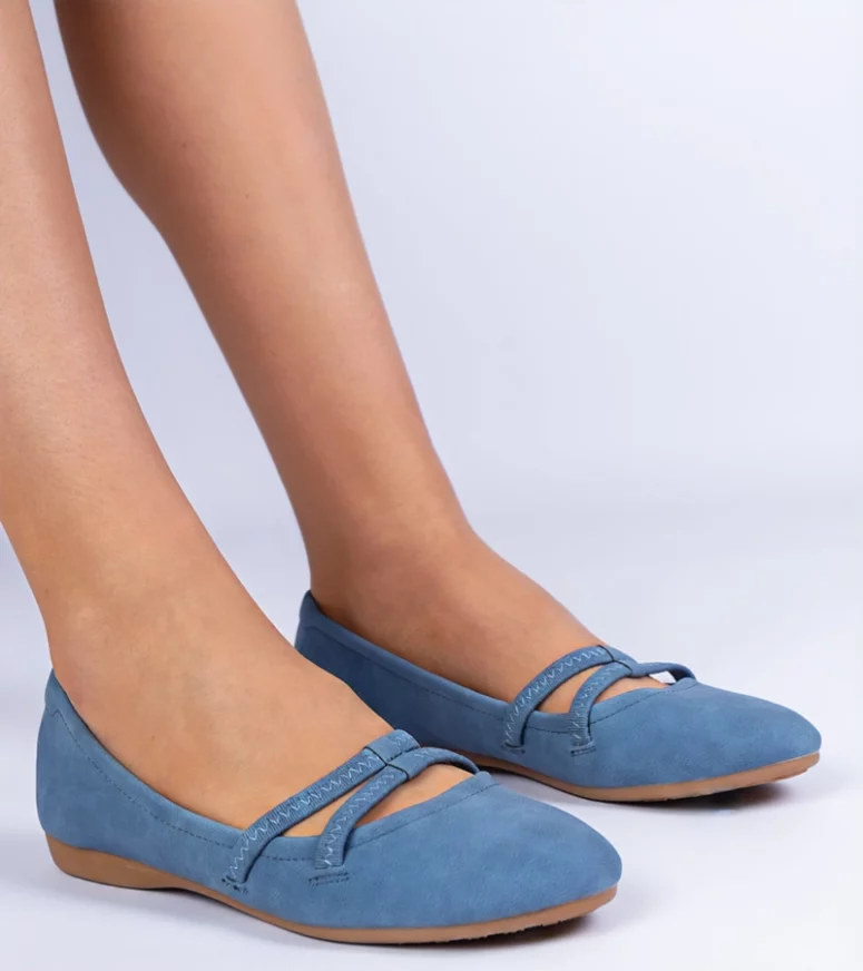 Niebieskie balerinki damskie z ekoskóry matowej Baronna – Gemre
