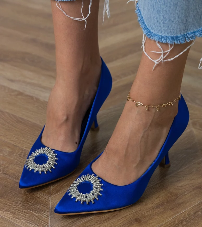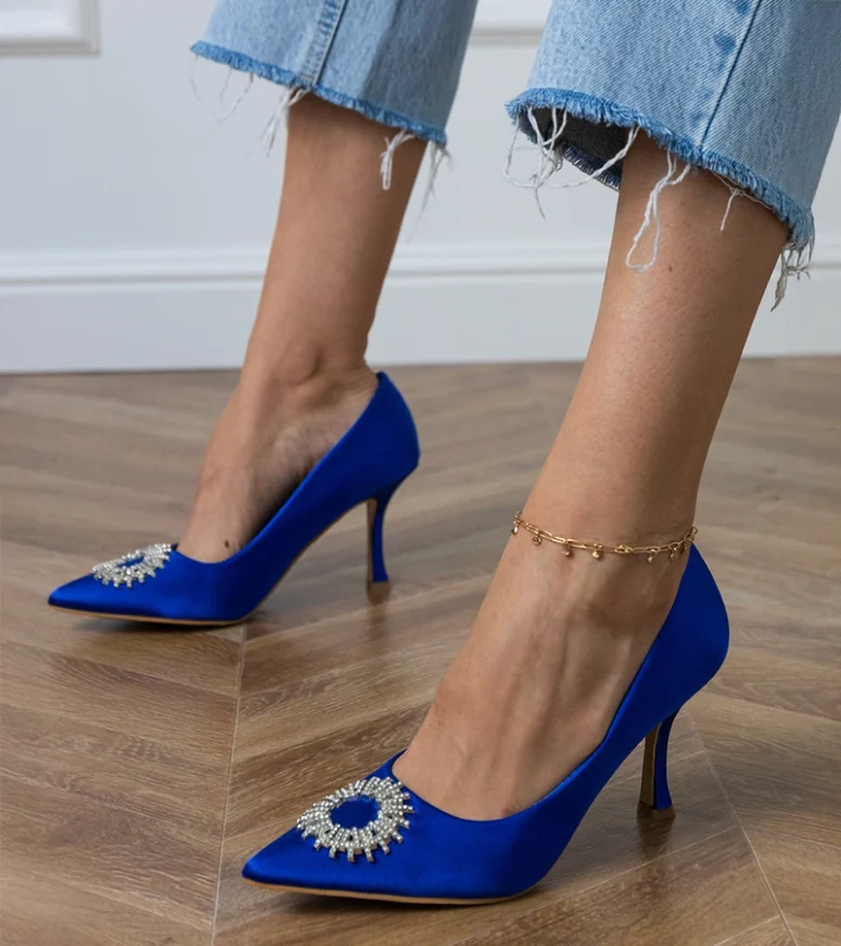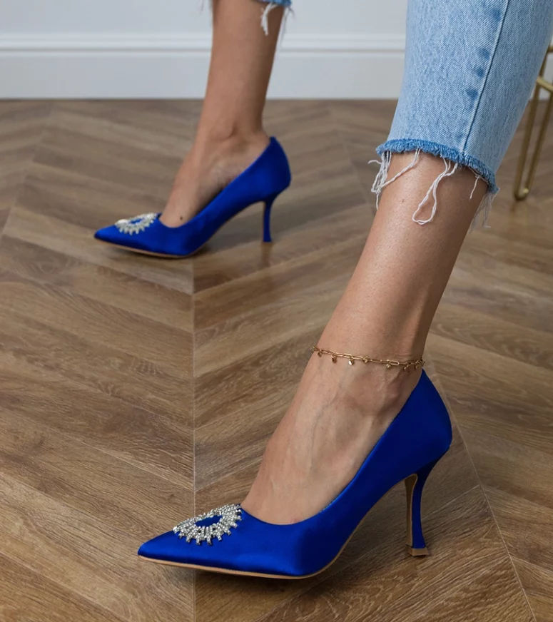 Niebieskie czółenka satynowe z cyrkoniami Bellira – elegancja na wyjątkowe okazje
