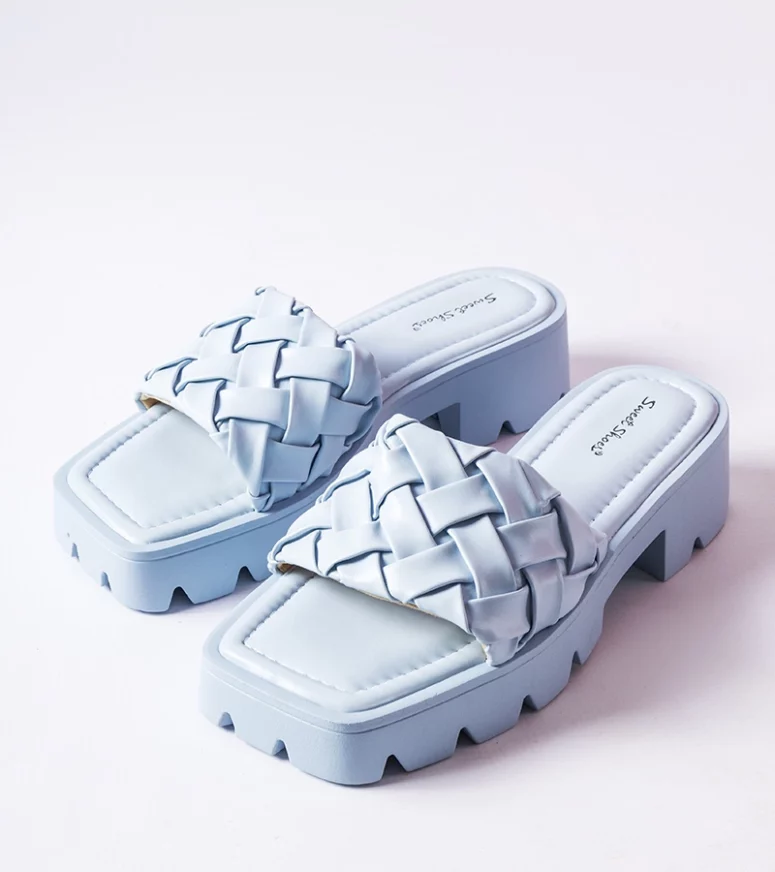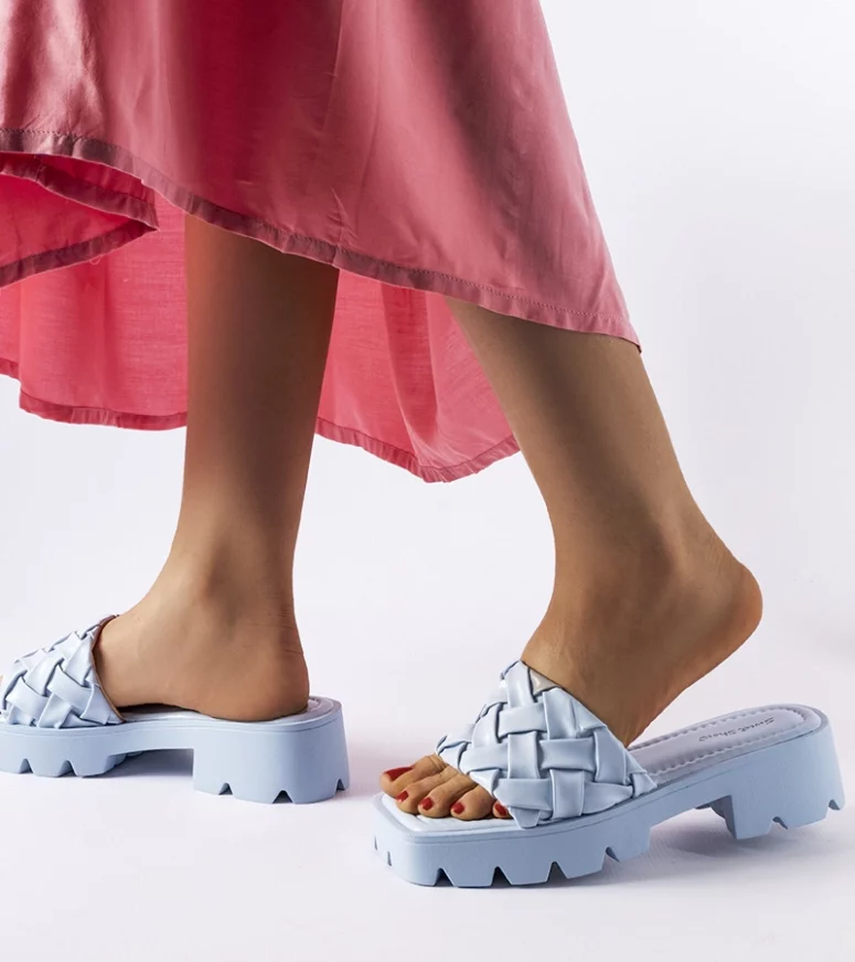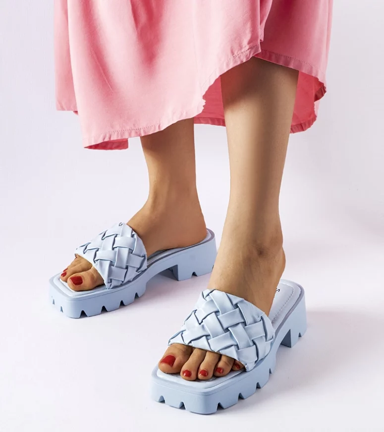 Niebieskie klapki damskie na traktorowej podeszwie Lora
