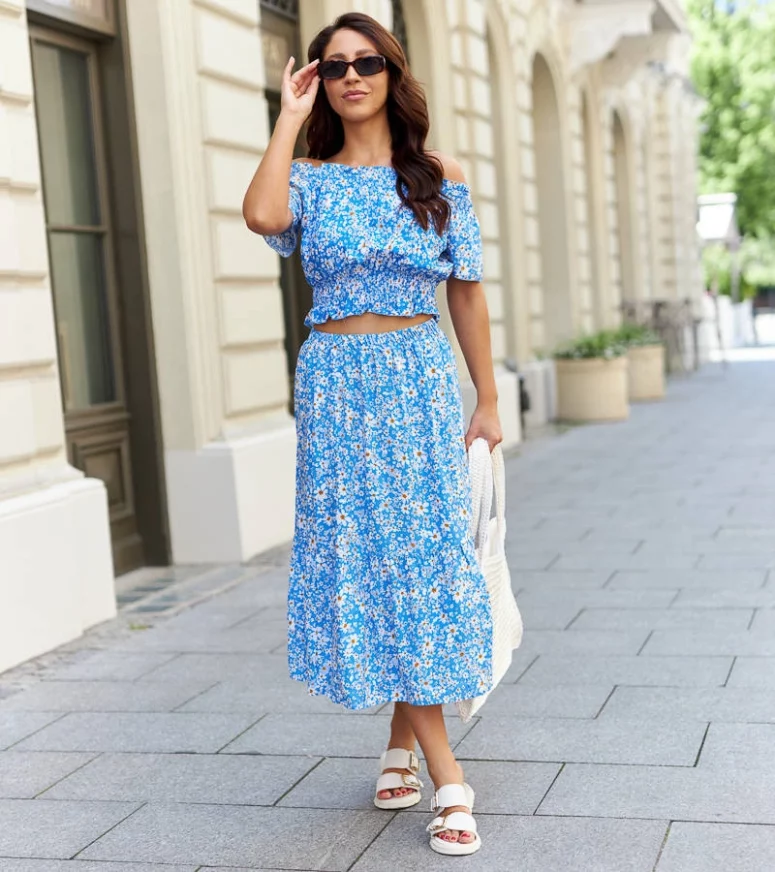 Nie czekaj i już dziś dodaj niebieski komplet z topem i spódnicą midi Elora do swojej garderoby. To inwestycja w jakość i styl, która z pewnością posłuży Ci przez wiele sezonów. Sprawdź, jak łatwo możesz stworzyć z jego pomocą niezapomniane stylizacje na każdą okazję!
