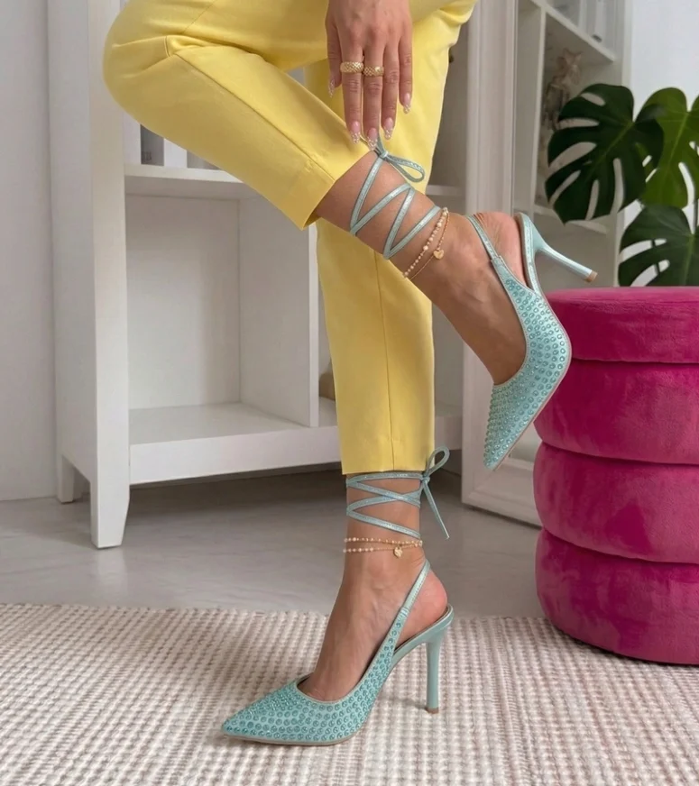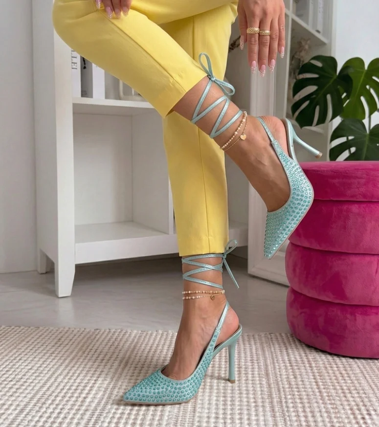 Niebieskie Szpilki Z Odkrytą Pięta Zdobione Cyrkoniami Edith