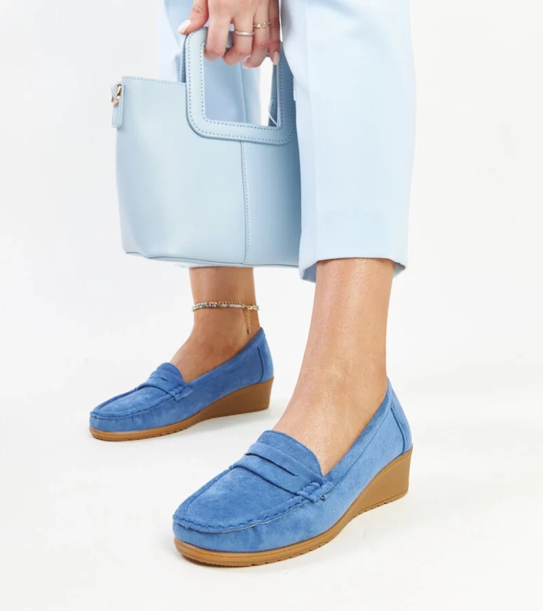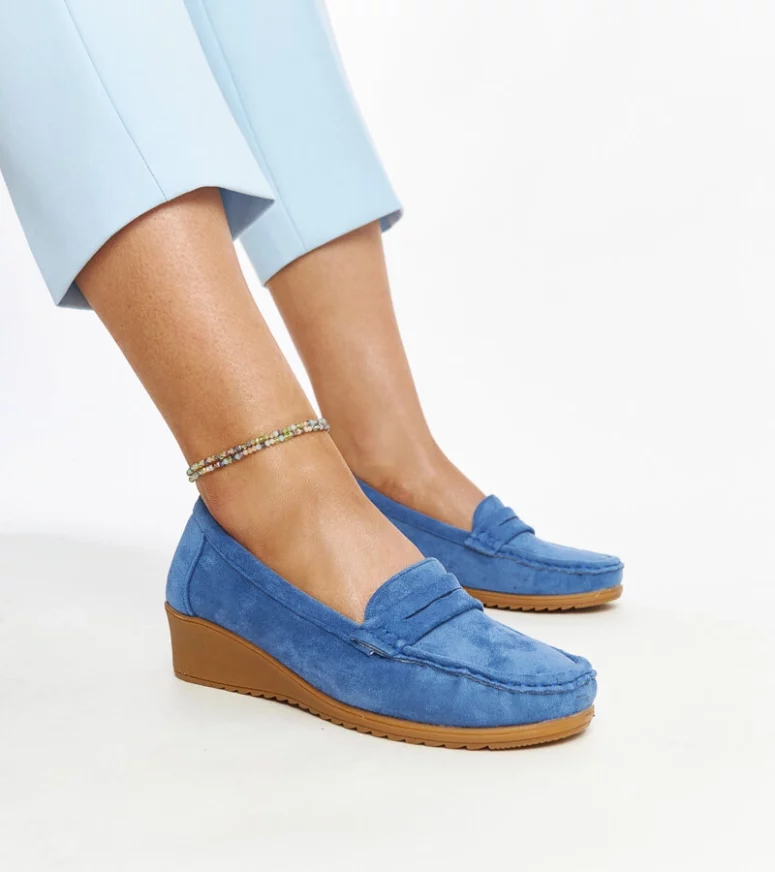 Niezwykle eleganckie niebieskie zamszowe mokasyny na koturnie Sakena to prawdziwa rewolucja w świecie obuwia! Ich niski, migdałkowy nosek oraz wsuwane design sprawiają, że są nie tylko stylowe, ale również wygodne. Wykonane z wysokiej jakości zamszu oraz gumowej podeszwy, zapewniają stabilność i komfort podczas noszenia. Idealne na wiele okazji – od codziennych spacerów po eleganckie spotkania. Dopasuj je do swojej ulubionej stylizacji i bądź na czasie z najnowszymi trendami!