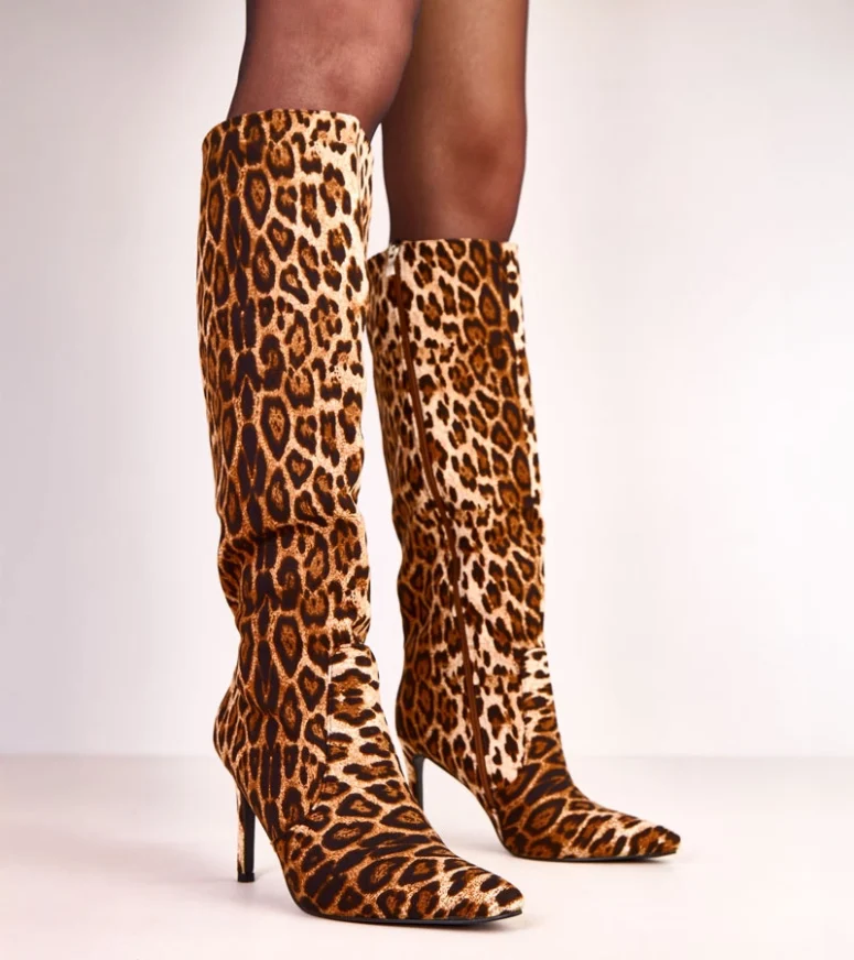 Panterkowe kozaki damskie na szpilce Adrienne