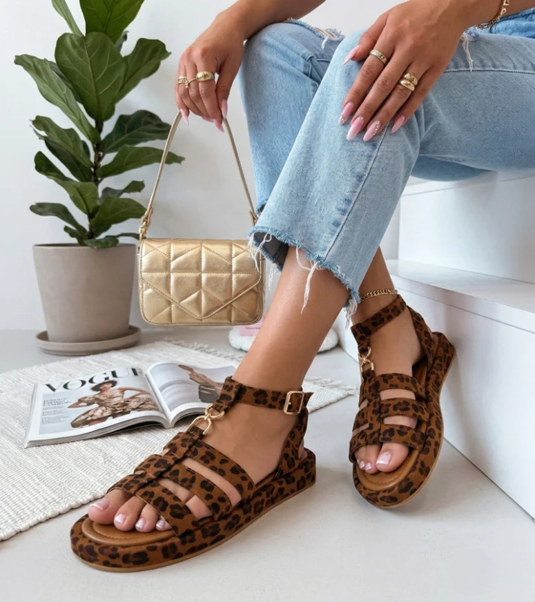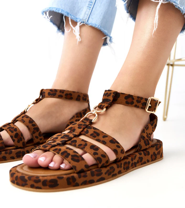 Panterkowe sandały rzymianki zapinane na kostce Nargiz