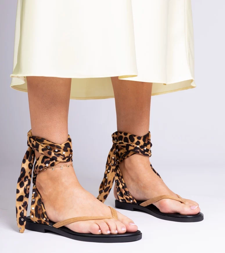 Panterkowe sandały typu japonki wiązane wokół nogi Santrium – Gemre