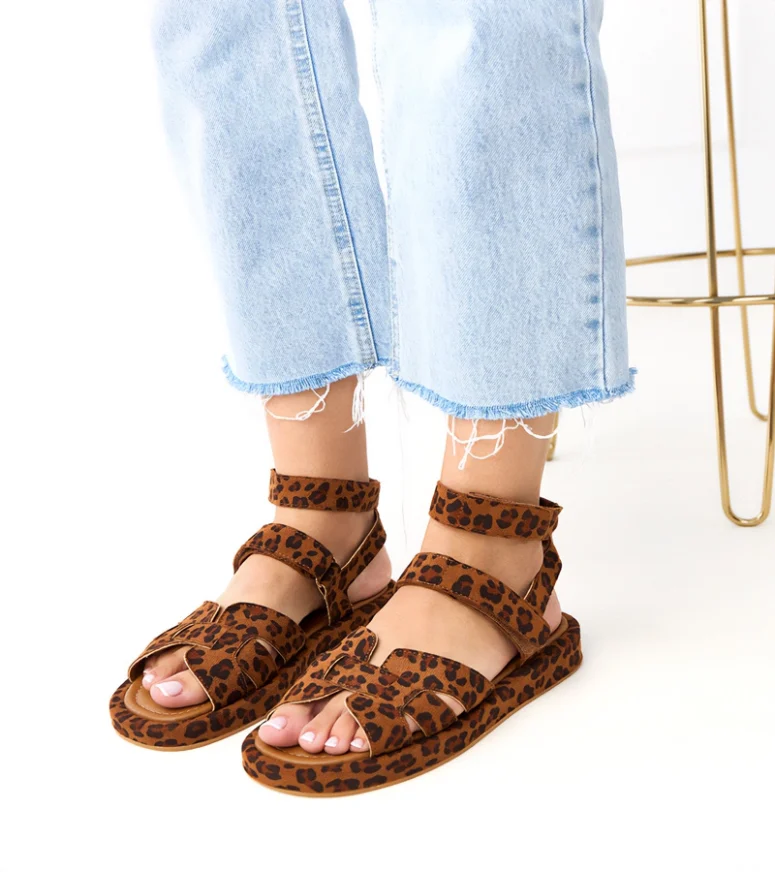 Odkryj wyjątkowy styl, jaki oferują panterkowe sandały zapinane na kostce Maimuna. To idealny wybór dla kobiet, które lubią wyróżniać się z tłumu i cenią sobie połączenie wygody z modnym designem. Te efektowne sandały damskie w panterkowy wzór doskonale podkreślą charakter zarówno codziennych, jak i wieczorowych stylizacji, dodając im odrobiny drapieżnego uroku i elegancji.