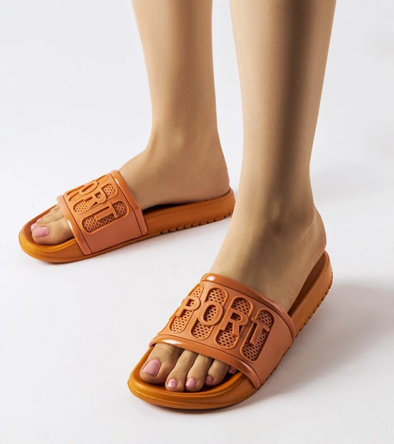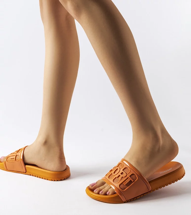 Pomarańczowe gumowe klapki Moiariello to idealny wybór dla współczesnych kobiet, które pragną być trendy i stylowe w letnie dni. Klapki posiadają platformę, która dodaje im szczypty elegancji i podkreśla ich nowoczesny charakter. Okrągły nosek zapewnia komfort noszenia, a materiał wykonany z wysokiej jakości gumy gwarantuje trwałość i wygodę. Te klapki są doskonałe na gorące dni, gdyż pozwalają stopom oddychać, jednocześnie chroniąc je przed uszkodzeniami. Słowa kluczowe: damskie, współczesne, na platformie, okrągły nosek, sztos, z gumy, letni; na gorące dni, trendy.