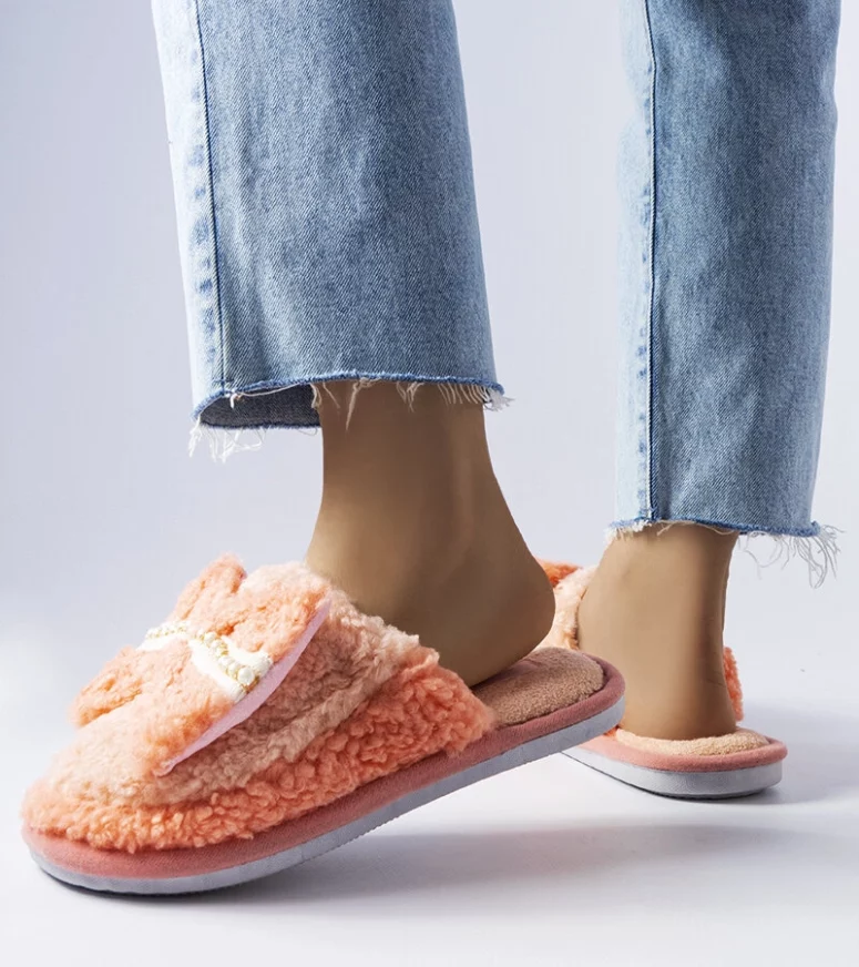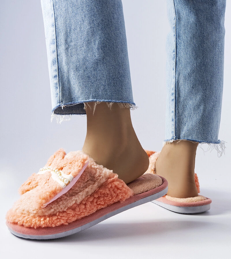 Pomarańczowe kapcie z kokardką Bow