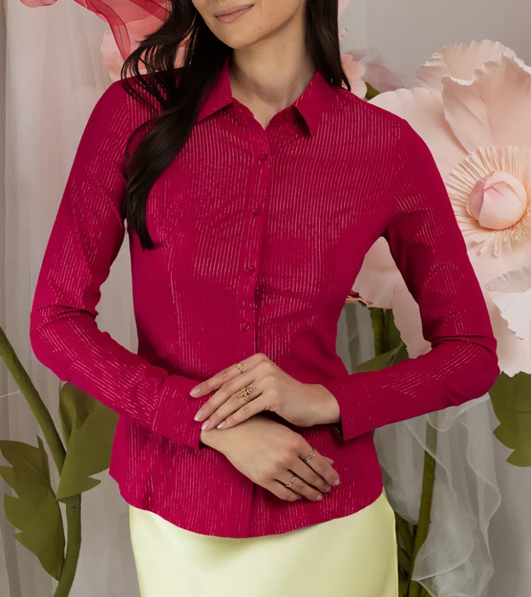 Koszula Domma wyróżnia się klasycznym krojem, który doskonale podkreśla sylwetkę, jednocześnie pozostając wygodnym i niekrępującym ruchów. Jej subtelny różowy kolor dodaje delikatności i kobiecości, a elegancki design sprawia, że pasuje zarówno do formalnych, jak i casualowych stylizacji. Możesz ją nosić do biura, na spotkania biznesowe, a także na wieczorne wyjścia z przyjaciółmi.