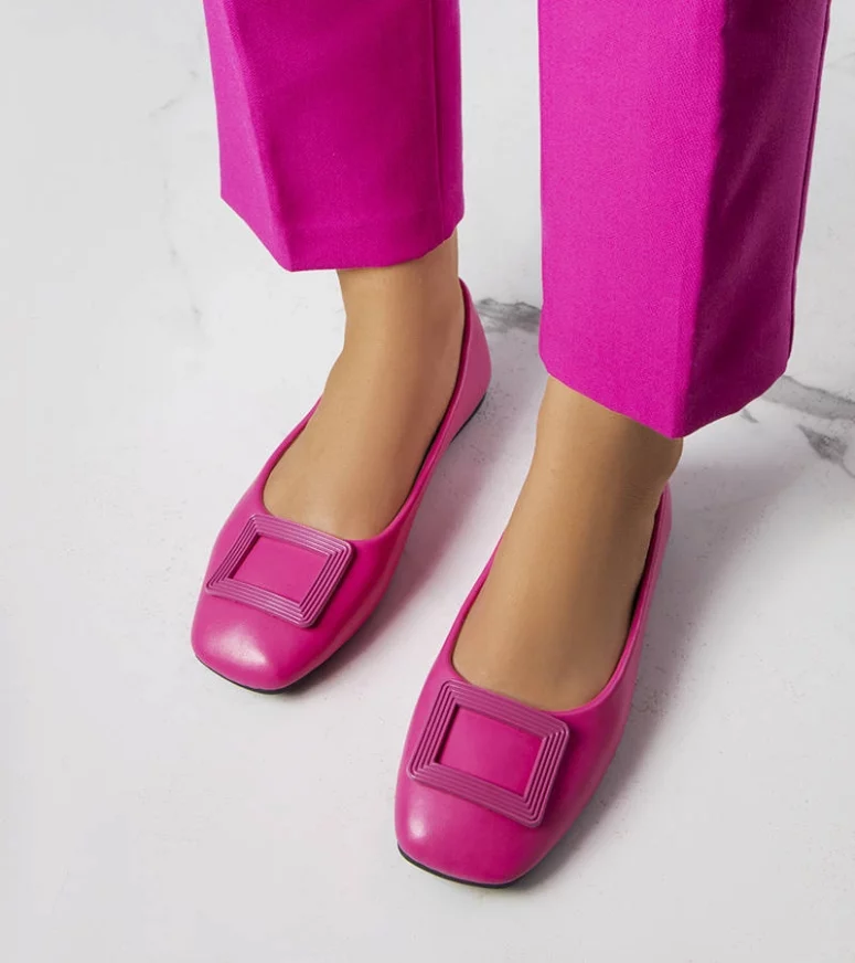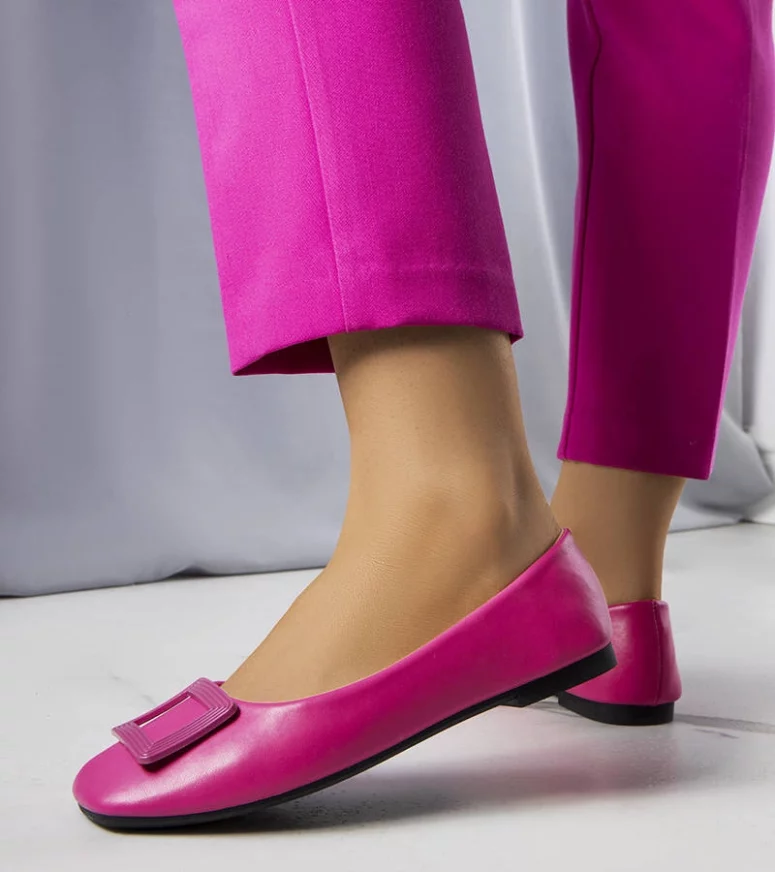 Balerinki Sheller wygodnie wsuwane, osadzone na płaskiej podeszwie. Niska cholewka, z kwadratowym noskiem. Dekorowane z przodu ozdobną plastikową klamerką. Buty wykonane ze skóry ekologicznej, wraz z wkładką. Numeracja standardowa, prosimy sugerować się swoim rozmiarem.