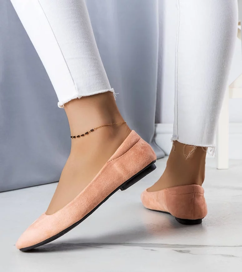 Różowe baleriny z eko-zamszu Jules są idealne na letnie, gorące dni. Wykonane z wysokiej jakości materiału, który przypomina zamsz, zapewniają komfort noszenia i oddychalność. Baleriny posiadają gumę wokół brzegu, co sprawia, że są łatwe do wsunięcia i dopasowują się do stopy. Ich płaski krój jest nie tylko wygodny, ale także elegancki, dzięki czemu można je nosić zarówno na co dzień, jak i na bardziej formalne okazje. Baleriny mają niski obcas i kwadratowy nosek, co dodaje im szlachetności i unikalnego charakteru. Dostępne są w damskim rozmiarze i różowych kolorach, które dodadzą uroku każdej stylizacji.