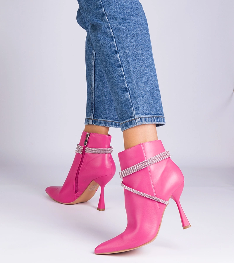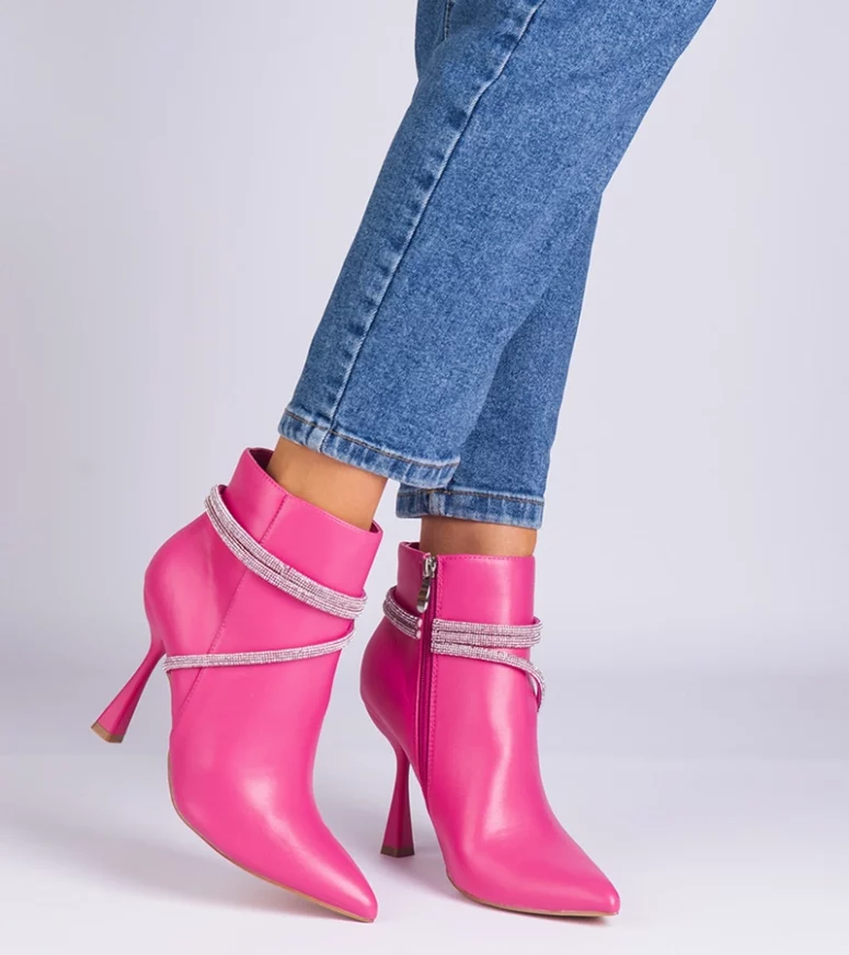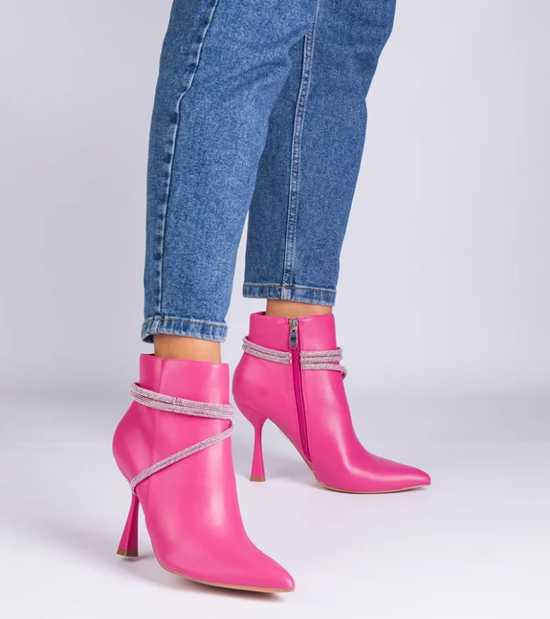 Przedstawiamy wyjątkowe różowe botki na szpilce zdobione cyrkoniami Fantagaro od renomowanej marki Gemre. Te eleganckie botki na szpilce to doskonały wybór dla każdej kobiety, która pragnie dodać blasku i stylu swoim codziennym oraz wieczorowym stylizacjom. Wykonane z najwyższej jakości materiałów, zapewniają nie tylko olśniewający wygląd, ale także komfort noszenia przez cały dzień.