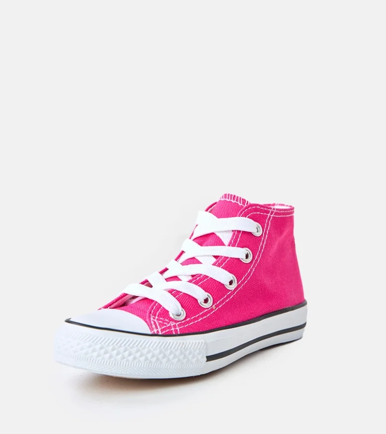 Wysoka cholewka w modelu trampki za kostkę zapewnia lepsze podtrzymanie stopy i stabilność podczas chodzenia, biegania czy zabawy na placu zabaw. Dzięki temu różowe trampki dla dziewczynki sprawdzą się jako obuwie do przedszkola, szkoły, a także na weekendowe wycieczki. Klasyczne sznurowanie umożliwia idealne dopasowanie do stopy dziecka, co przekłada się na wygodę noszenia przez cały dzień.