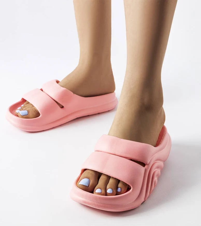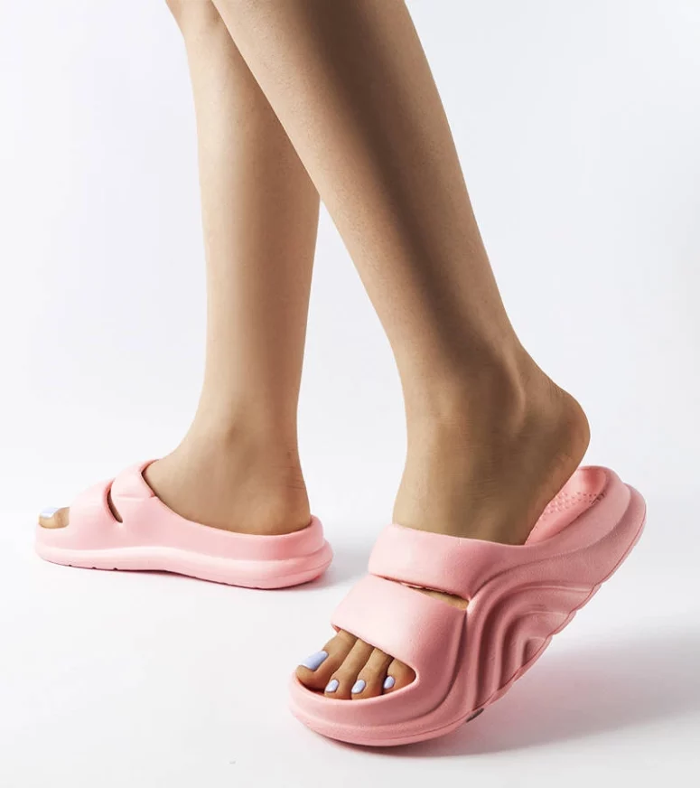 Różowe klapki to modny dodatek dla osób lubiących delikatne, dziewczęce akcenty w garderobie. Ich subtelny kolor pięknie podkreśla opaleniznę i dodaje lekkości każdej stylizacji. Dzięki wykorzystaniu wysokiej jakości gumy, gumowe klapki są łatwe w czyszczeniu, odporne na wilgoć i idealne na basen, prysznic czy plażę. Wystarczy przetrzeć je wilgotną ściereczką lub opłukać wodą, aby znów wyglądały jak nowe.