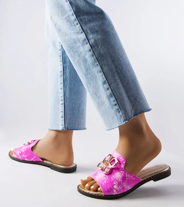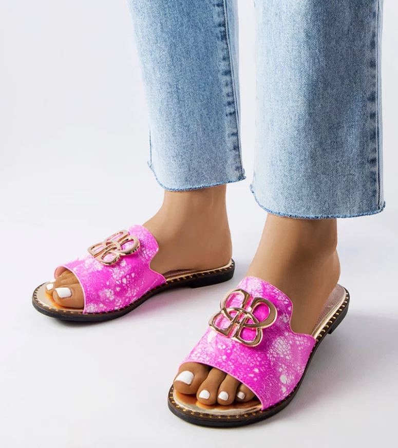 Różowe klapki damskie ze klamrą Lea to idealny wybór dla młodego pokolenia, które ceni sobie modny i popularny styl. Te stylowe letnie buty są doskonałe na gorące dni, gdy potrzebujemy czegoś lekkiego i przewiewnego. Okrągły nosek zapewnia wygodę podczas chodzenia, a wykonane z naturalnej skóry paski gwarantują trwałość i wytrzymałość. Podeszwa z gumy zapewnia dobrą przyczepność na różnych powierzchniach. To doskonała propozycja dla każdej kobiety, która szuka eleganckich i kobiecych sandałów na lato.