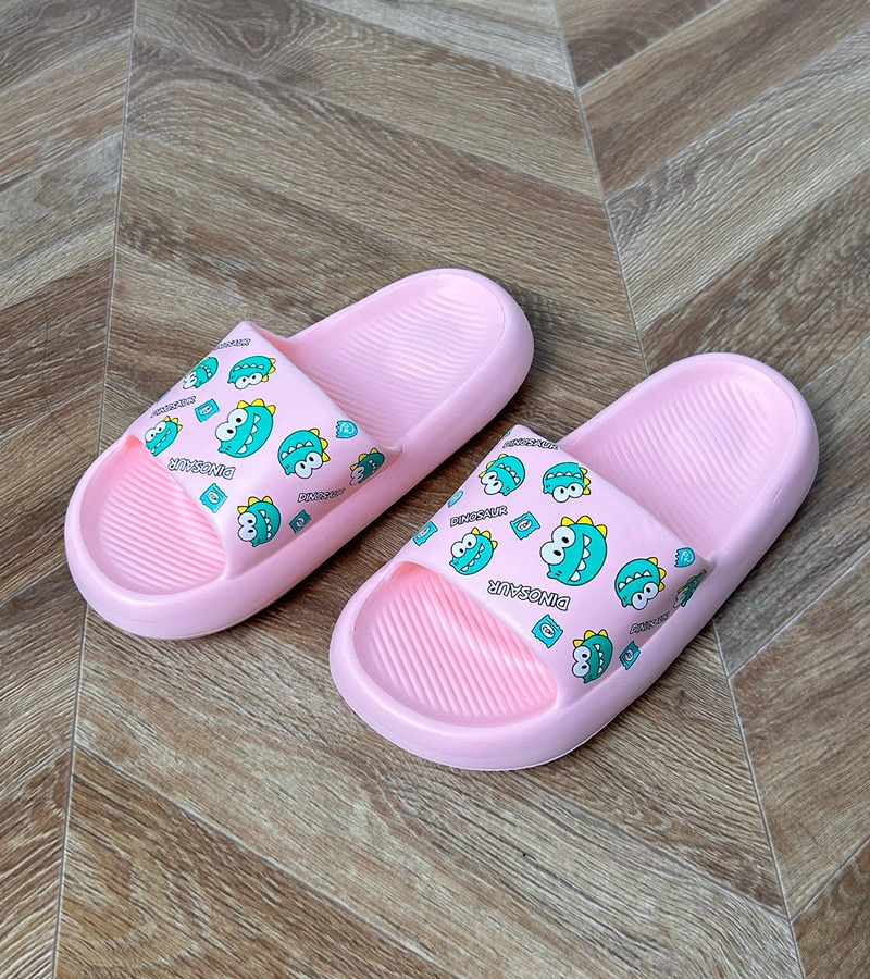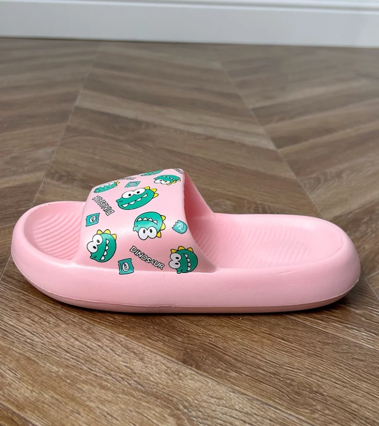 Różowe klapki dziecięce z nadrukiem Dinos