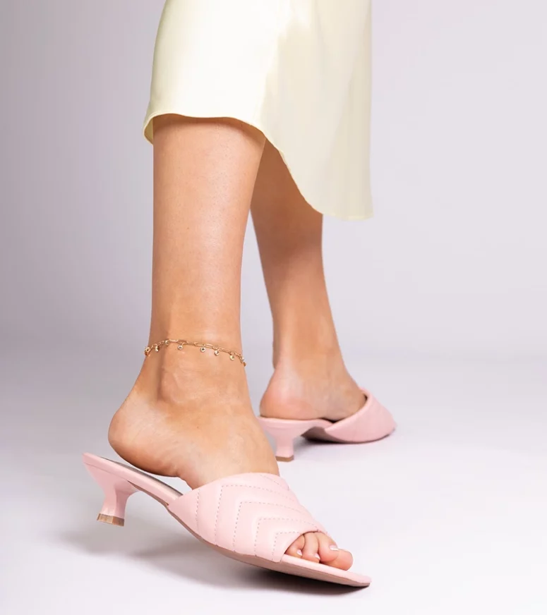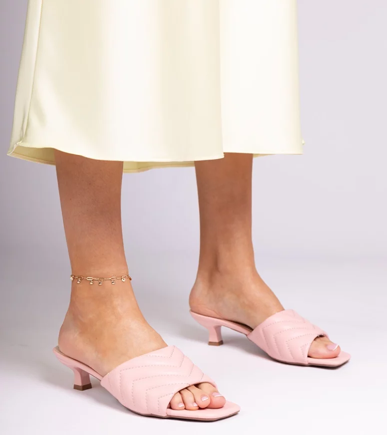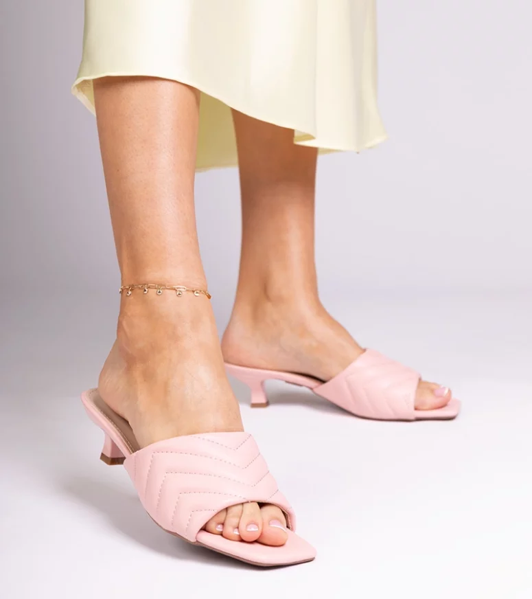Różowe klapki na niskim obcasie Launay