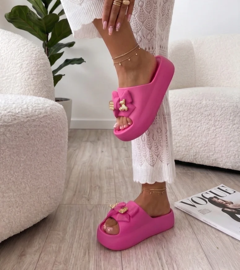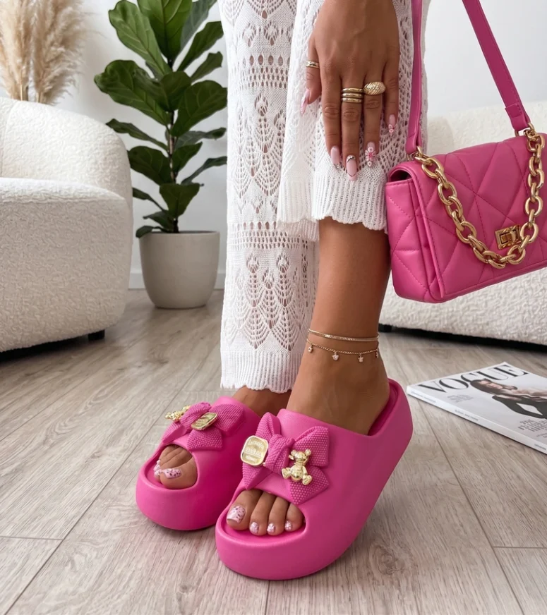 Różowe Klapki Na Platformie Z Kokardą Imogen