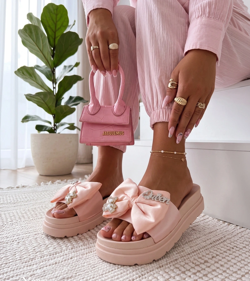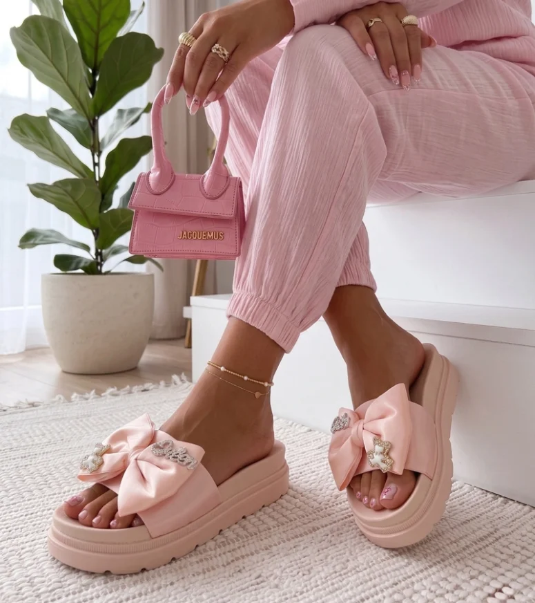 Różowe Klapki Na Platformie Z Kokardą Inès