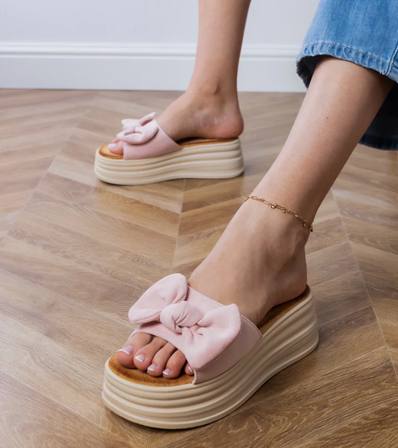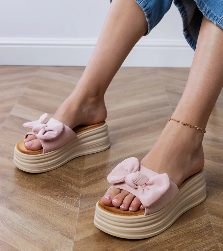 Delikatny, dziewczęcy odcień różu w połączeniu z efektowną kokardką na przodzie tworzą wyjątkowo stylowy i subtelny look. Stabilna platforma optycznie wysmukla sylwetkę, a jednocześnie zapewnia wygodę nawet podczas długiego noszenia. Różowe klapki na platformie Gemre świetnie komponują się z sukienkami, spódnicami, szortami czy lekkimi spodniami, stanowiąc idealne uzupełnienie letniej garderoby.