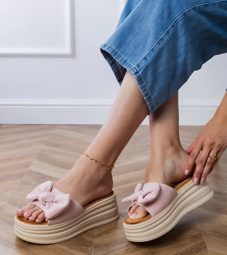 Wybierając różowe klapki na platformie z kokardką Ados Gemre, stawiasz na modne, wygodne i kobiece obuwie, które przyciąga wzrok i podkreśla indywidualny styl. To idealna propozycja dla miłośniczek delikatnych, romantycznych akcentów w garderobie. Postaw na klapki Gemre z kokardką i ciesz się komfortem oraz modnym wyglądem każdego dnia.