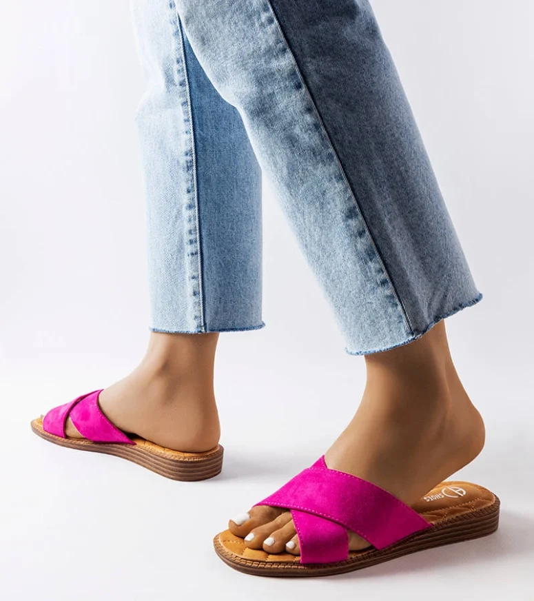 Różowe klapki Tiana to idealny wybór dla młodego pokolenia, które ceni sobie modę i trend. Te popularne sandały są doskonałe na letnie dni, gdy chcesz czuć się swobodnie i komfortowo. Wykonane z eko-zamszu i gumy, zapewniają trwałość i wygodę noszenia. Kwadratowy nosek dodaje im nowoczesnego stylu, a platforma podnosi je do poziomu najnowszych trendów. Dostępne w wersji damskiej, te różowe klapki Tiana to must-have każdej fashionistki!