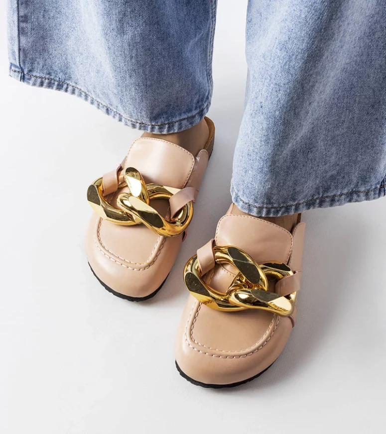 Różowe klapki z łańcuchem Christelle