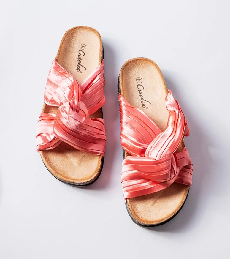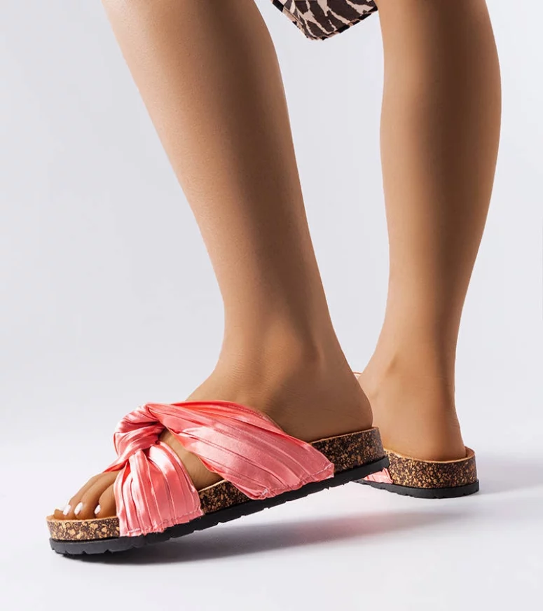 Różowe klapki zdobione materiałem Fresne