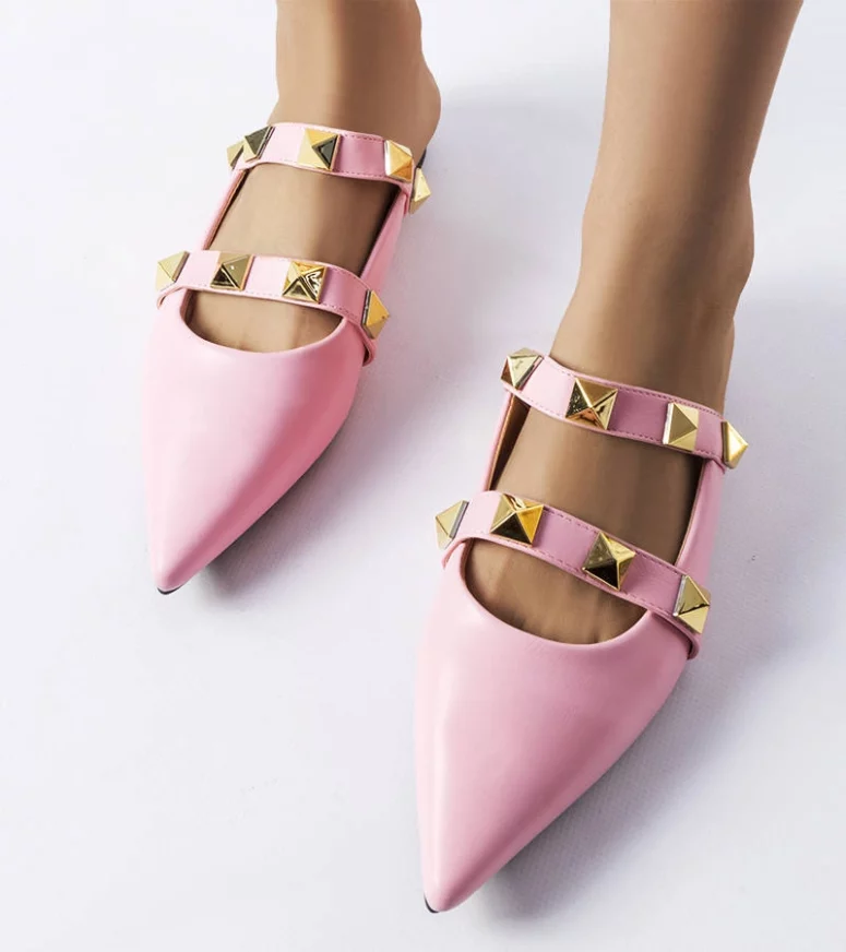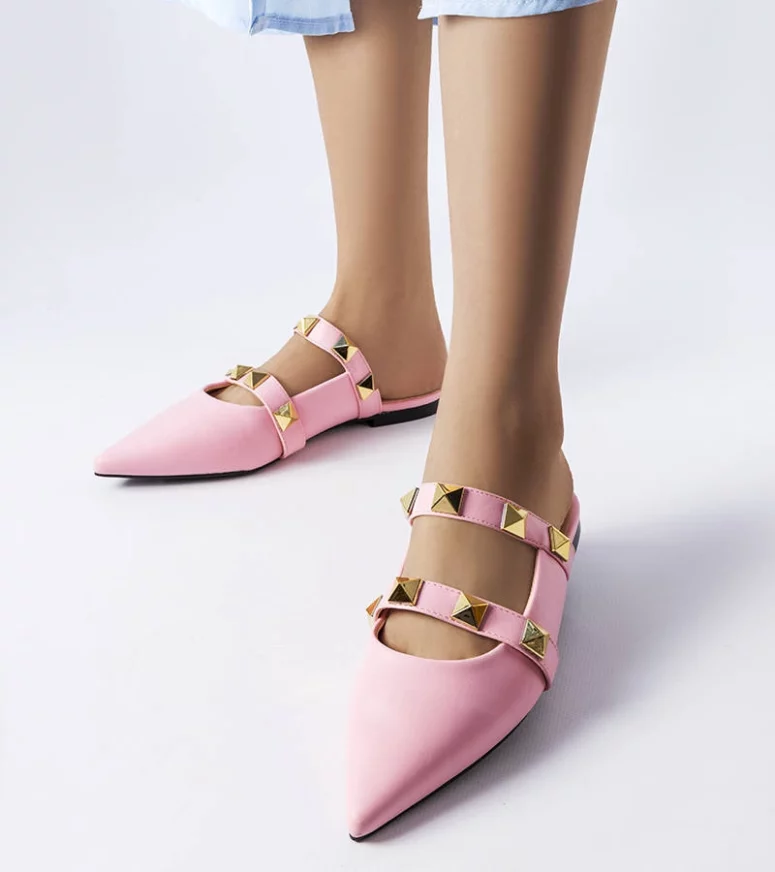 Klapki Ruckman ze szpiczastym noskiem, wsuwane. Zabudowane z przodu oraz po bokach, wycięte na pięcie i śródstopiu. Osadzone na płaskim obcasie. Ozdobione dwoma paskami z ćwiekami. Wykonane ze skóry ekologicznej. Najlepiej leżą na wąskiej stopie. Lubisz nosić nowoczesne, niespotykane buty i dodatki? Koniecznie zaopatrz się w te klapki! Numeracja standardowa, sugerujemy kierować się swoim rozmiarem.