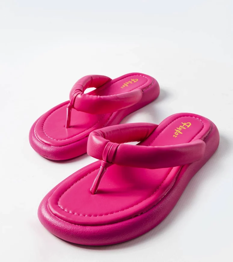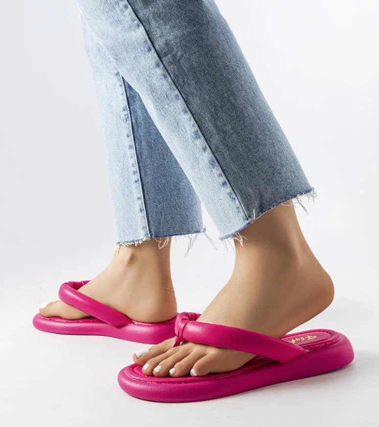 Masywna podeszwa tych japonek damskich gwarantuje dobrą amortyzację i komfort noszenia przez cały dzień. Szeroki pasek pewnie trzyma stopę, a delikatnie profilowana wkładka zwiększa wygodę nawet podczas dłuższego chodzenia. Dzięki uniwersalnemu fasonowi, różowe masywne japonki łatwo dopasować do wielu stylizacji – od lekkich letnich sukienek, przez szorty, aż po casualowe jeansy. To idealne sandały damskie na lato dla kobiet w każdym wieku.
