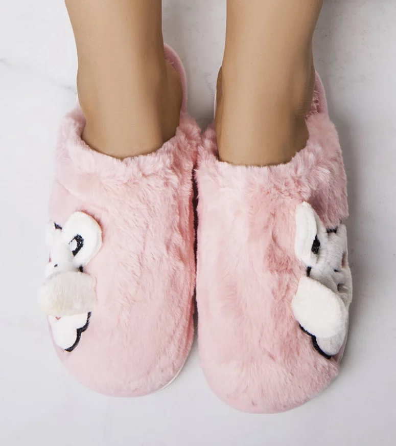 Kapcie Half Bunny wsuwane, na płaskiej podeszwie. Z zabudowanym noskiem, ozdobionym aplikacją z motywem zwierzęcym. Wykonane z miękkiego materiału. Jeżeli szukasz uroczych i ciepłych kapci – model Half Bunny z pewnością Cię zachwyci!