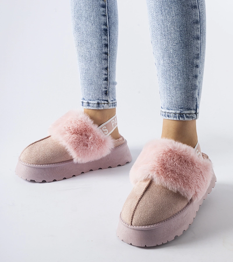 Dzięki elastycznej gumce, kapcie łatwo wsuwają się na stopę, zapewniając doskonałe dopasowanie i komfort podczas noszenia. Dodatkowo, średni obcas nadaje im subtelności i lekkiego uniesienia, co sprawia, że prezentują się bardzo kobieco. Ocieplany materiał wewnętrzny zapewnia niezrównaną ochronę przed mrozem, utrzymując stopy przyjemnie ciepłe nawet w najzimniejsze dni. Natomiast futerko dodaje im luksusowego wyglądu i uczucia miękkości. Kapcie posiadają okrągły nosek, który daje swobodę ruchu palcom, a jednocześnie zachowuje estetykę designu. Dzięki temu można czuć się komfortowo i swobodnie nawet przez długie godziny. Te różowe ocieplane kapcie z gumką i futrem Sangro są idealnym wyborem dla tych, którzy pragną połączyć wygodę, elegancję i funkcjonalność w jednym produkcie. Niezależnie od tego, czy spędzasz wieczór w domu czy wychodzisz na spacer, te kapcie staną się Twoim ulubionym towarzyszem w zimowych miesiącach.