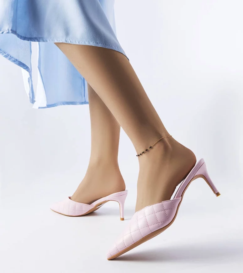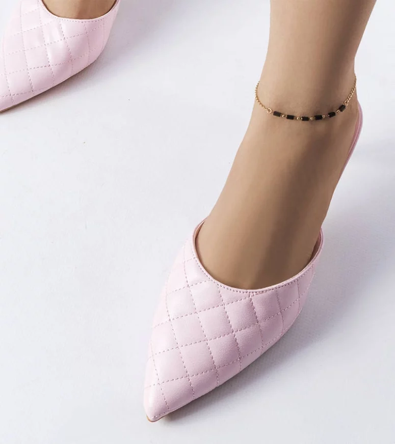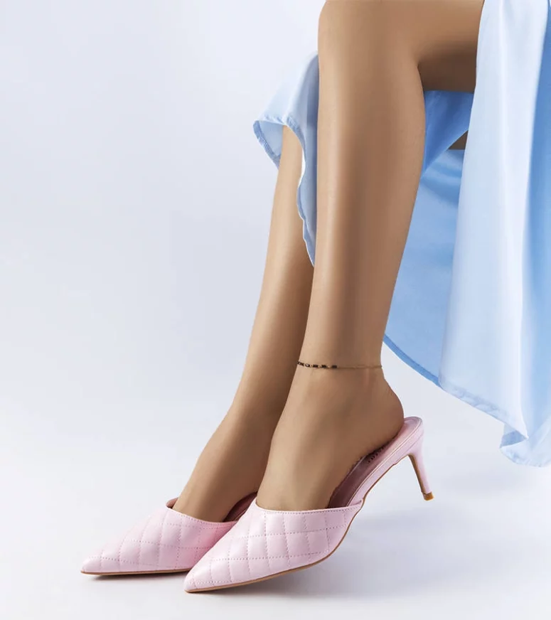 Klapki Lambert wyróżniają się niezwykle intrygującym, modnym noskiem w formie szpicu. Udekorowana cholewka efektownym pikowaniem. Wykonane ze skóry ekologicznej. Model wsuwany z odkrytą piętą. Osadzone na wysokim, stabilnym obcasie typu szpilka. Klapki ze szpiczastym noskiem, to wciąż gorący hit ostatnich sezonów. Niezwykle elegancko i kobieco wyglądają w połączeniu w zestawieniu ze zwiewną sukienką maxi lub kombinezonem. Numeracja standardowa, sugerujemy kierować się swoim rozmiarem.