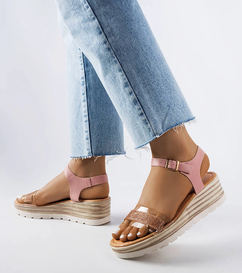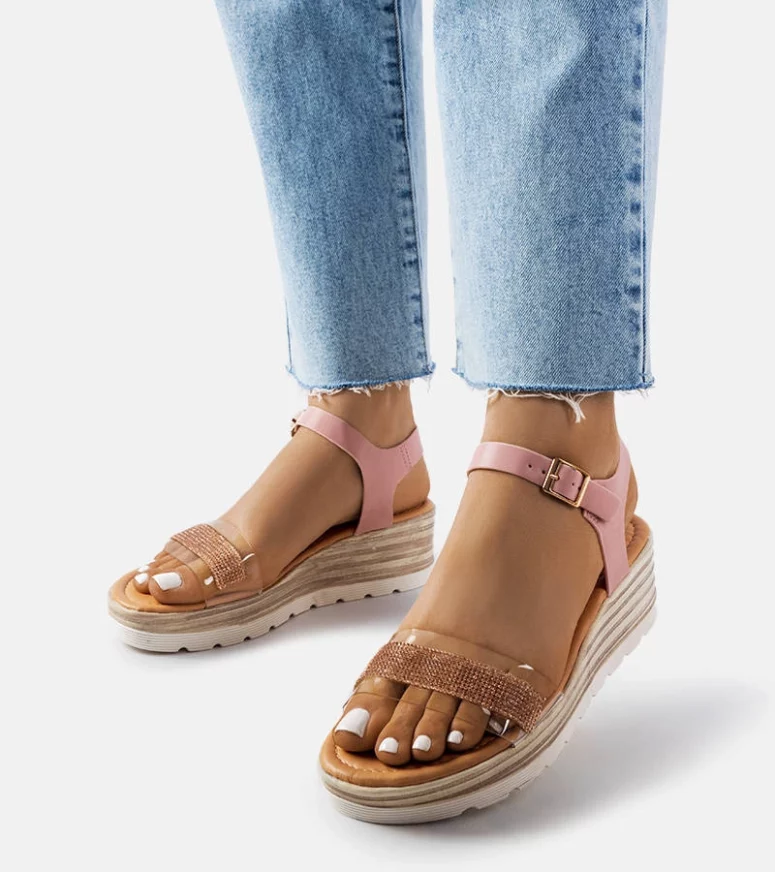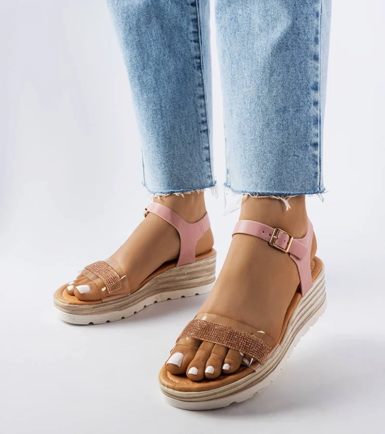 Różowe sandały na koturnie Bussière są idealnym wyborem dla kobiet, które cenią sobie modny styl i wygodę w letnie dni. Krój tych butów jest bardzo popularny i na czasie, dzięki czemu wpisują się w najnowsze trendy mody. Sandały te wykonane są z tworzywa sztucznego oraz ozdobione cyrkoniami, co nadaje im wyjątkowego blasku i elegancji. Klasyczny design sprawia, że pasują do wielu stylizacji, zarówno casualowych, jak i bardziej eleganckich. Buty te wykonane są z eko-skóry, co jest przyjazne dla środowiska. Średni obcas na koturnie zapewnia stabilność i komfort użytkowania. Sandały posiadają również praktyczną sprzączkę, która umożliwia regulację rozmiaru i dopasowanie do indywidualnych potrzeb. Te damskie sandały są doskonałym wyborem na gorące dni, gdy chcemy czuć się modnie i wygodnie jednocześnie.