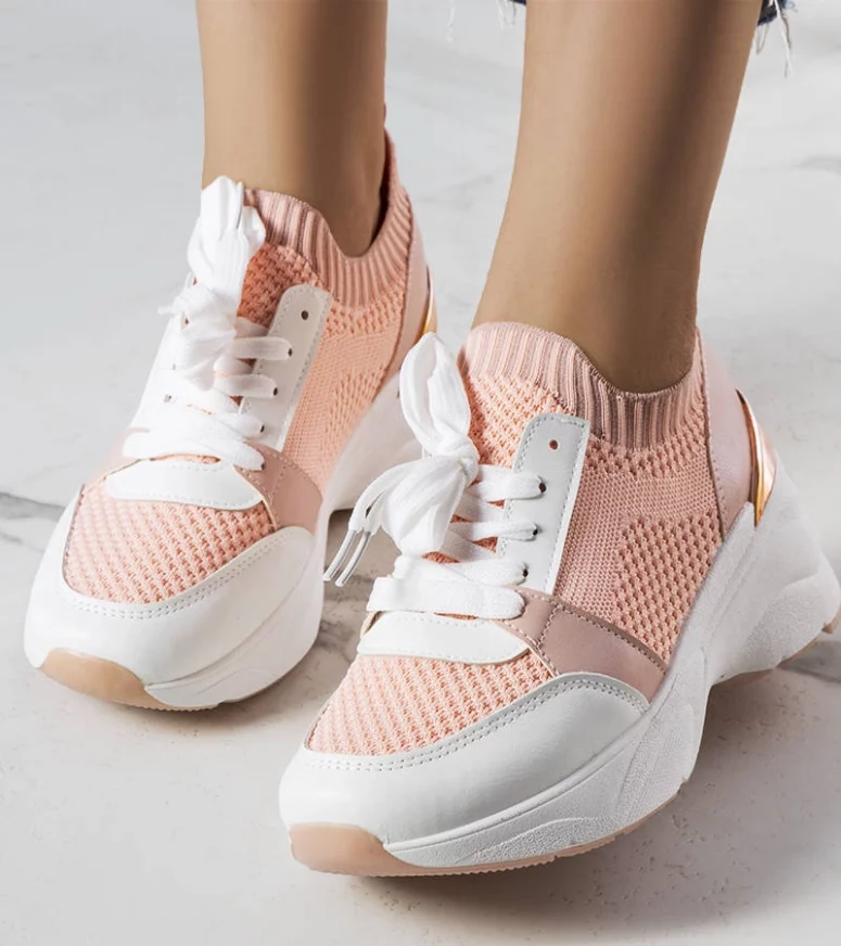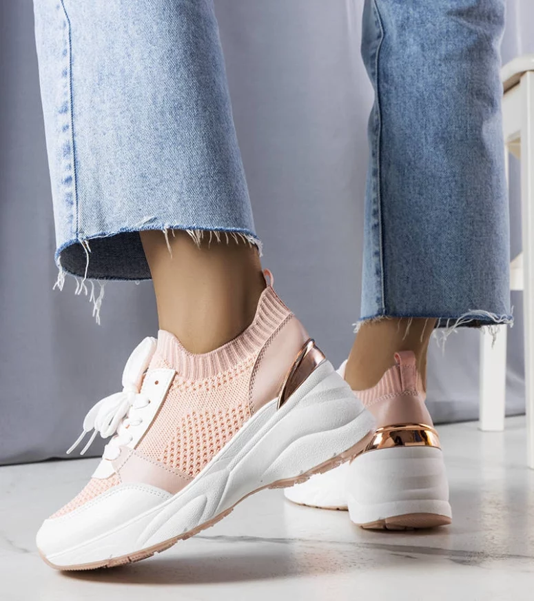 Sneakersy Ann na  grubej podeszwie. Boki podeszwy pokryto modnymi żłobieniami. Model wsuwany, dodatkowo wyposażony w sznurówki, aby lepiej dopasować cholewkę. Cholewka krótka, kończąca się przed kostką. Wykonane z perforowanego materiału tekstylnego i urozmaicone naszywkami z ekoskóry. Utrzymane w jednolitej kolorystyce. Wewnątrz amortyzująca i pochłaniająca wilgoć wkładka o strukturze plastra miodu. Idealne do stylizacji miejskich i sportowych. Numeracja standardowa, prosimy kierować się swoim rozmiarem.