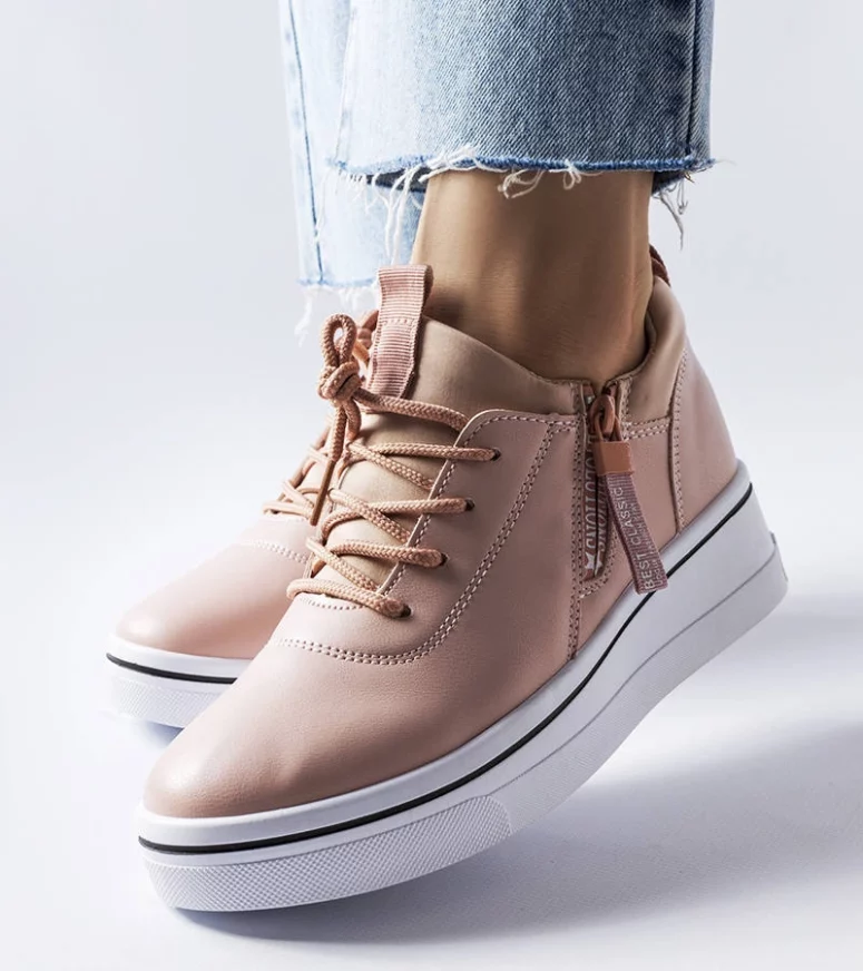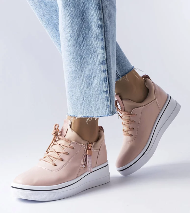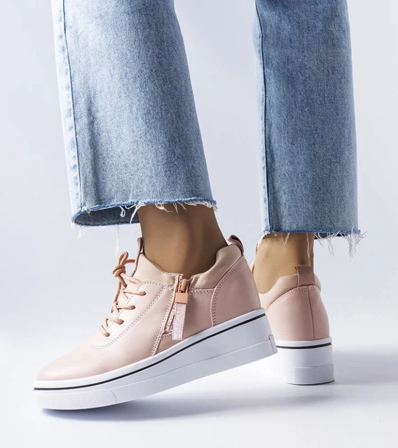 Sneakersy Mathieu na koturnie. Podeszwa zdobiona paskiem po całej długości . Okrągły nosek. Cholewka przed kostkę. Z przodu wiązanie i dekoracyjne suwaki. Zdobione napisem po zewnętrznej stronie cholewki. Wykonane z ekoskóry, łącznie z wkładką. Łączą w sobie sportowy luz z casualową elegancką. Must have sezonu! Numeracja zaniżona, sugerujemy wybór wiekszego rozmiaru.