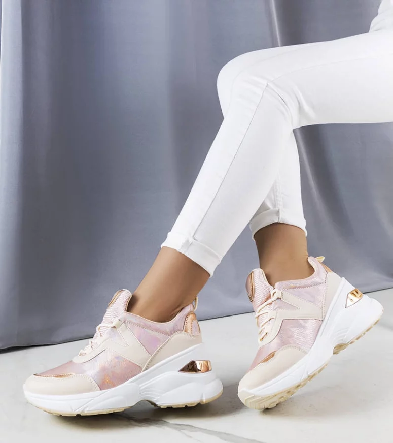 Różowe sneakersy z metalicznymi wstawkami Ruais