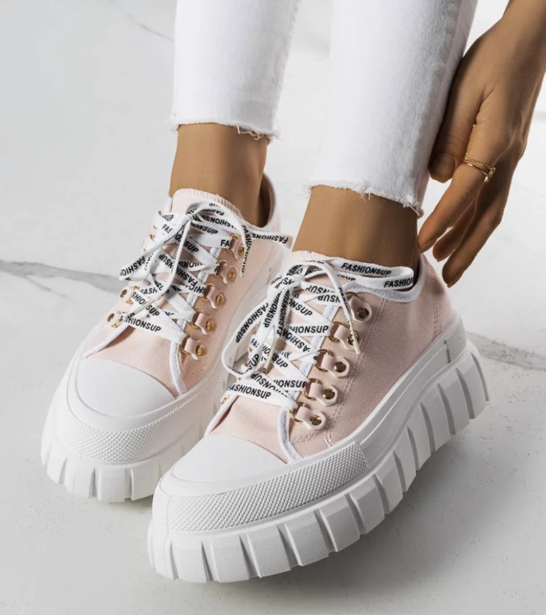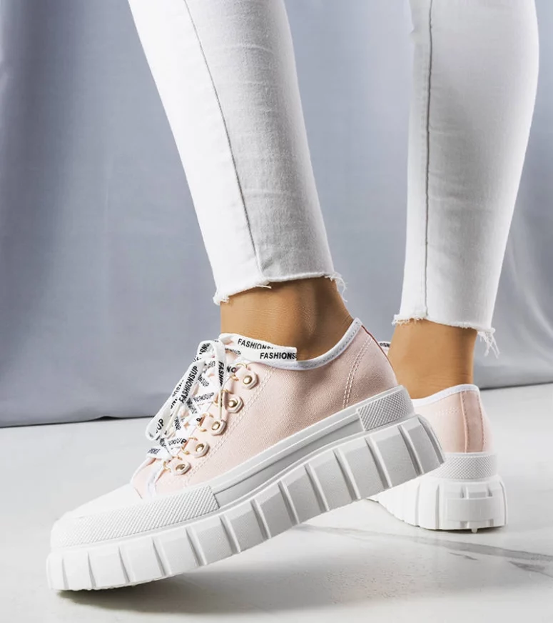 Trampki Toni wykonane z wysokiej jakości tkaniny. Wiązane na płaskie logowane sznurowadła. Wewnątrz komfortowa wkładka z materiału włókienniczego. Okrągły nosek usztywniony gumową wstawką. Cholewka sięgająca kostki ozdobiona delikatnymi przeszyciami. Osadzone na grubej podeszwie udekorowanej pionowymi żłobieniami. Trampki doskonale wpiszą się w streetwearowy outfit z modnymi jeansami i bluzą oversize. Numeracja standardowa, prosimy kierować się swoim rozmiarem.