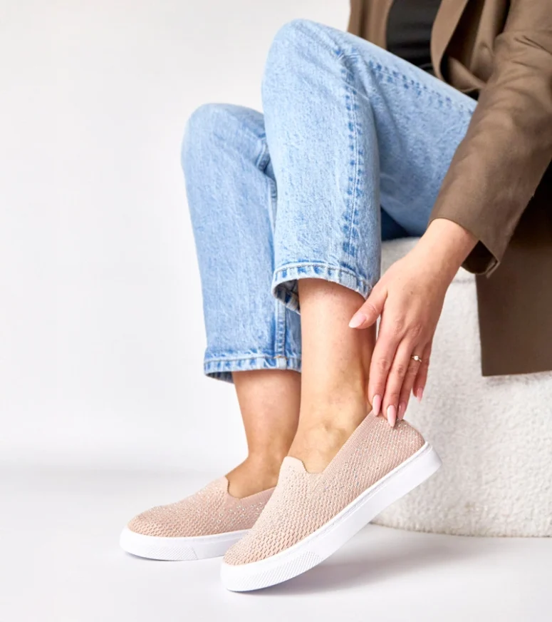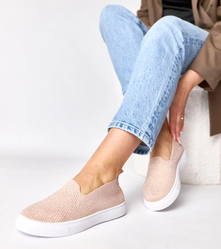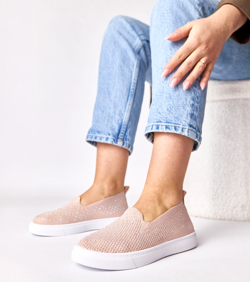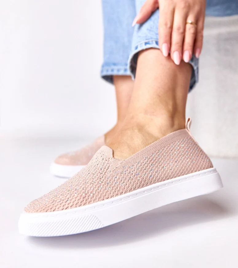 Różowe wsuwane materiałowe tenisówki z cyrkoniami Gabrielle