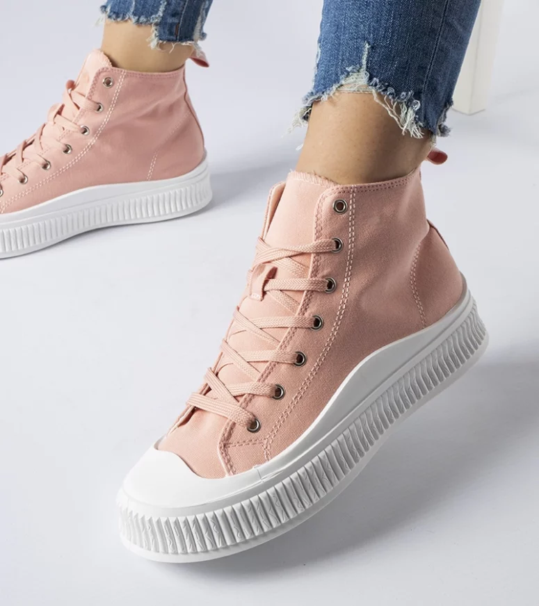 Trampki mają okrągły nosek, co dodaje im uroku i sprawia, że są bardziej kobiece. Wysoka podeszwa platformy nadaje im nie tylko modny wygląd, ale także dodatkową wysokość. To idealne rozwiązanie dla osób, które chcą poczuć się pewniej i dodać sobie kilka centymetrów wzrostu.