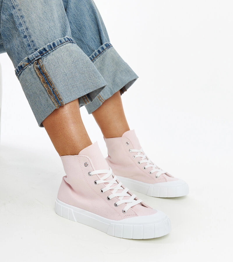 Różowe wysokie trampki Vinka to idealna propozycja dla młodego pokolenia poszukującego eleganckiego i postępowego looku. Trampki są sznurowane, posiadają okrągły nosek oraz wykonane są z wytrzymałej gumy, co gwarantuje ich trwałość. Ich wysoki fason nadaje im dodatkowo charakteru i sprawia, że będą doskonałym uzupełnieniem każdej miejskiej stylizacji.
