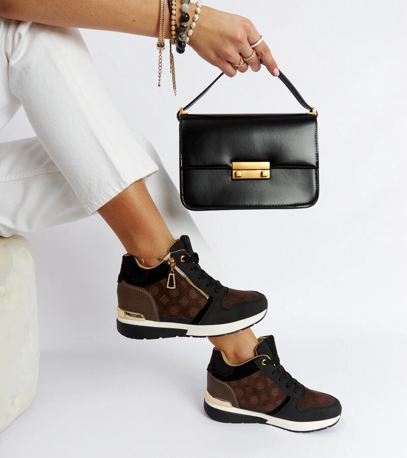 Czarne sneakersy są sznurowane, co pozwala na regulację dopasowania do indywidualnych preferencji. Ich unikalny design sprawia, że są one znakomitą propozycją na gorące dni letniego sezonu. Dodatkowo, buty posiadają wysoki obcas, który dodaje kobiecego uroku i podkreśla smukłość nogi. Dzięki temu stanowią one doskonałą kombinację stylu i wygody. Czarne sneakersy na koturnie Knoxville to obuwie, które wpisuje się w aktualne trendy. Idealnie pasują zarówno do casualowych, jak i bardziej eleganckich stylizacji. Niezależnie od okazji, te buty będą doskonałym uzupełnieniem każdej letniej garderoby.