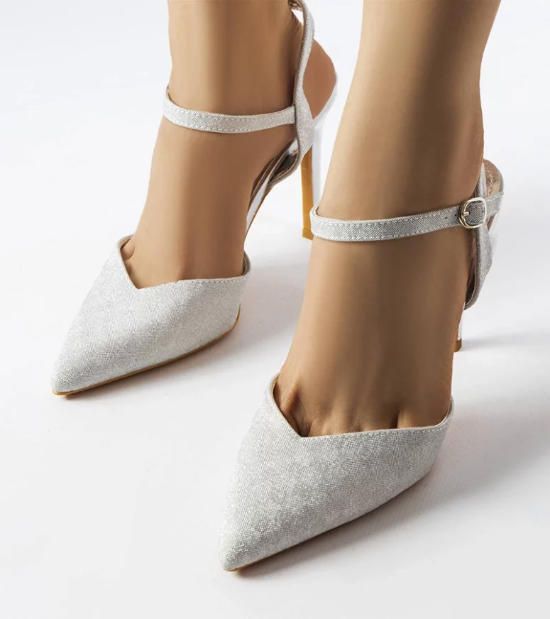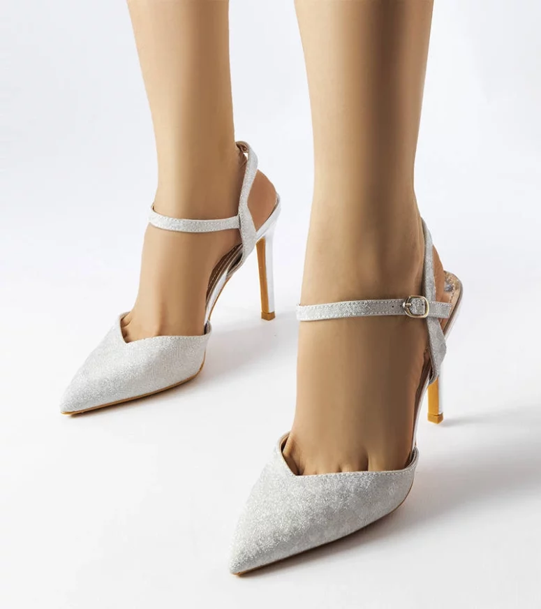 Srebrne błyszczące szpilki Gallia