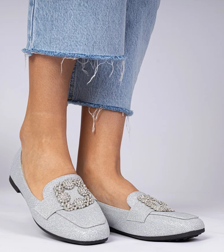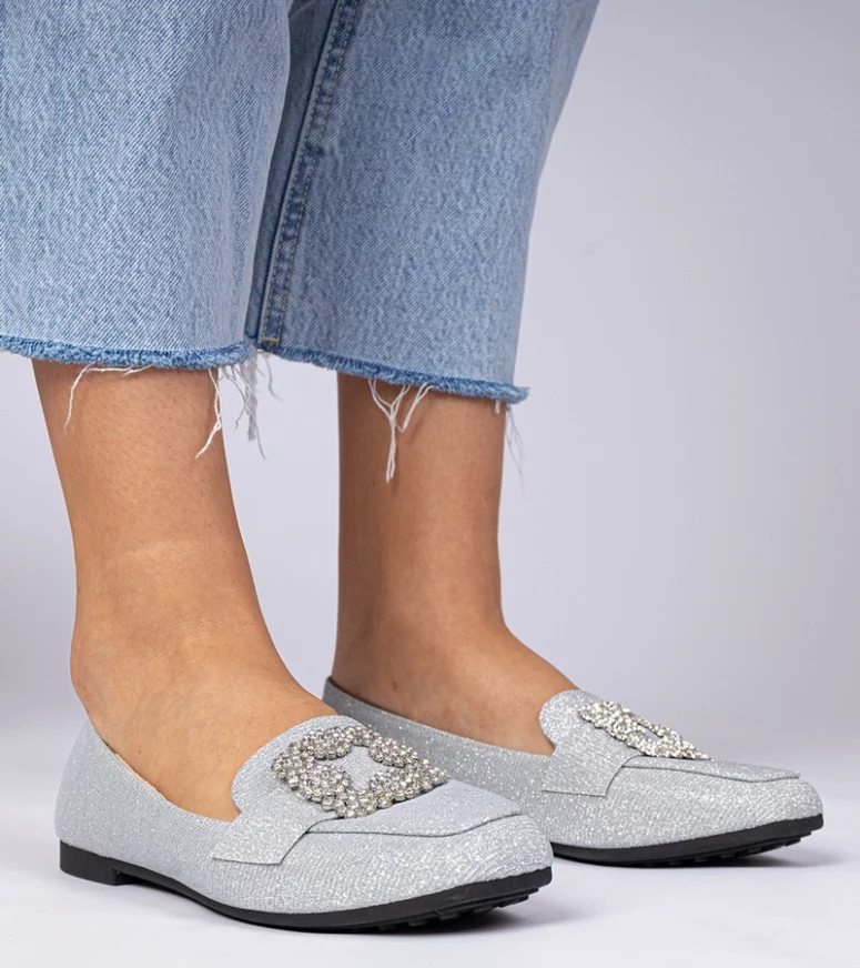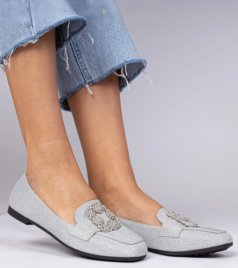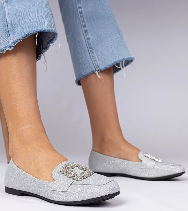 Wykonane z najwyższej jakości materiałów, nasze srebrne mokasyny zapewniają nie tylko stylowy wygląd, ale także komfort noszenia przez cały dzień. Dzięki zastosowaniu brokatu, buty te przyciągają wzrok i są doskonałym wyborem na wieczorne wyjścia, a także do codziennych stylizacji, które wymagają nieco więcej elegancji. Cyrkonie umieszczone na mokasynach dodają im luksusowego charakteru, podkreślając indywidualny styl każdej kobiety.