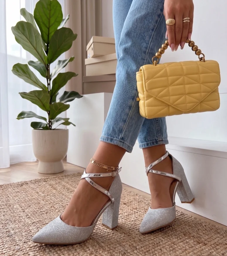 Srebrne Czółenka Błyszczące Na Słupku Matylda