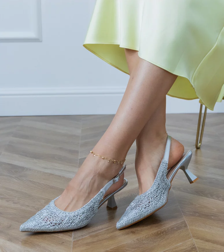 Srebrne czółenka to idealny wybór na wyjątkowe okazje, takie jak wesela, bankiety czy wieczorne wyjścia. Odkryta pięta dodaje im lekkości i finezji, podkreślając delikatność kobiecej sylwetki. Dzięki zastosowaniu wysokiej jakości materiałów, czółenka są trwałe i odporne na uszkodzenia, co sprawia, że będą służyć przez długi czas.
