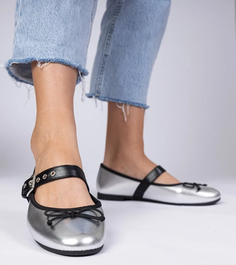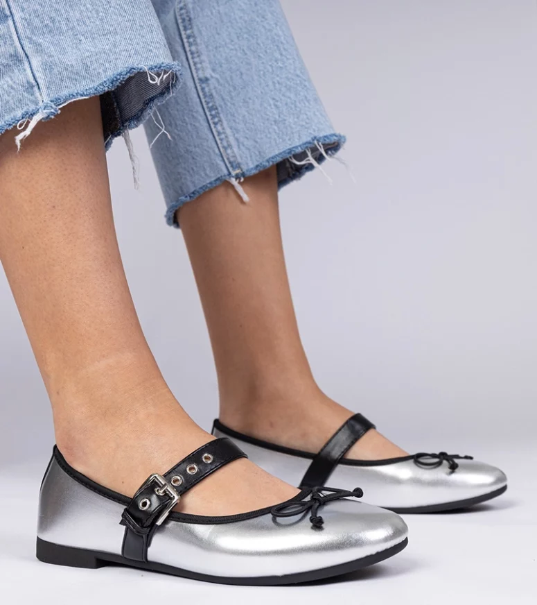 Nasze balerinki z kokardką wyróżniają się nie tylko unikalnym designem, ale także praktycznością. Srebrny kolor nadaje im eleganckiego wyglądu, który doskonale komponuje się zarówno z casualowymi, jak i bardziej formalnymi stylizacjami. Kokardka na przodzie dodaje uroku i kobiecości, sprawiając, że każda kobieta poczuje się wyjątkowo.