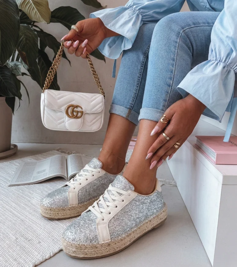 Nasze srebrne espadryle to połączenie klasycznego designu z nowoczesnym akcentem w postaci brokatowych zdobień, które dodają blasku każdej stylizacji. Dzięki uniwersalnej kolorystyce, doskonale komponują się zarówno z letnimi sukienkami, jak i casualowymi jeansami. Wybierając espadryle Gemre, zyskujesz pewność, że Twoje stopy będą wyglądać modnie i stylowo.