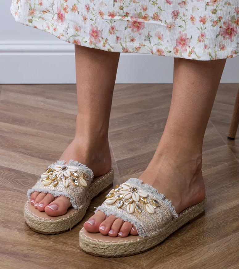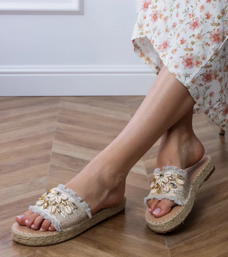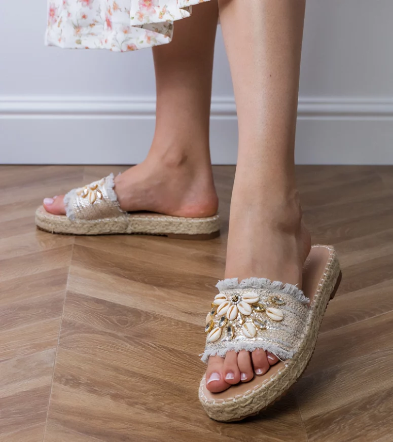 Odkryj niezwykłe srebrne klapki espadryle plecione z muszelkami Morsa od marki Gemre. To idealny wybór dla kobiet, które cenią sobie połączenie wygody i stylu. Nasze klapki zostały zaprojektowane z myślą o letnich spacerach, wakacyjnych wyjazdach i codziennym użytkowaniu, łącząc w sobie elegancję i nowoczesność.