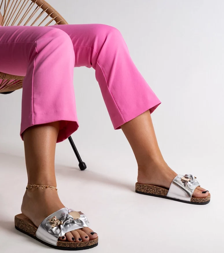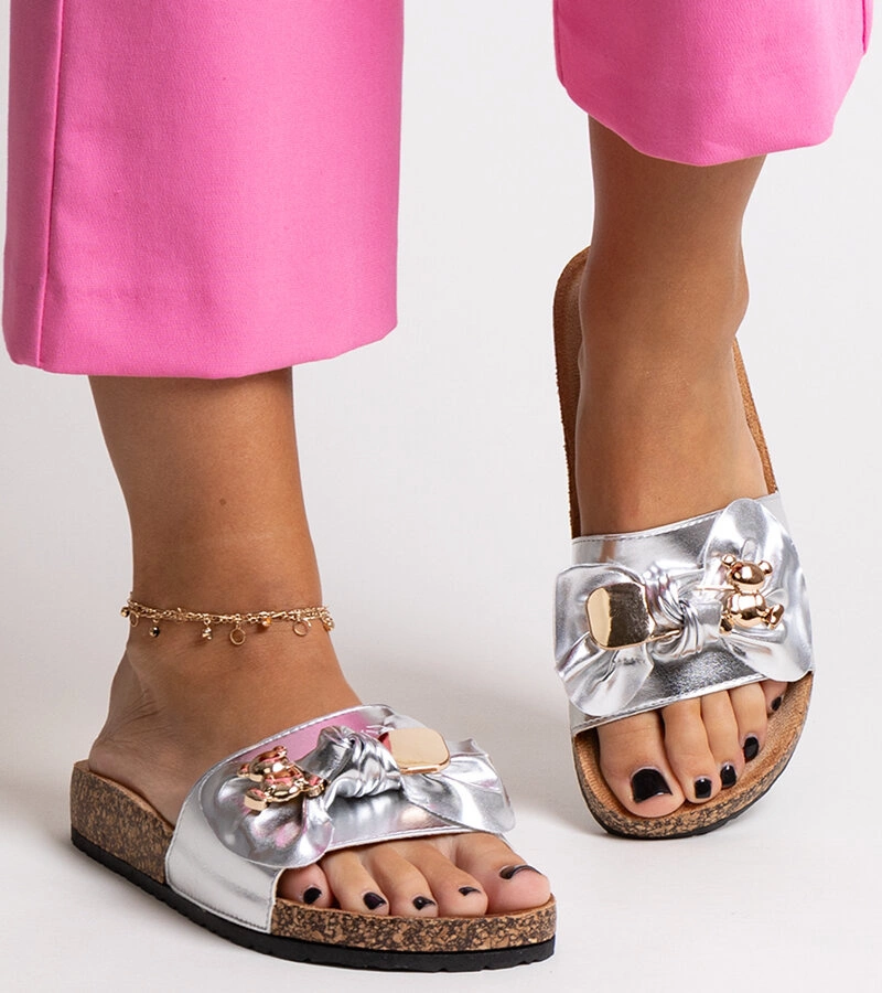 Srebrne klapki z kokardą i z misiem Segan to idealny wybór na letnie dni. Wykonane z gumy, są bardzo wygodne i łatwe do wsunięcia. Ich wyjątkowy design z kokardką i misiem sprawia, że są nie tylko praktyczne, ale także stylowe. Dla młodego pokolenia, które stawia na modę i trend, te klapki będą doskonałym uzupełnieniem letniej garderoby. Niech Twój strój na gorące dni nabierze jeszcze większego uroku dzięki tym unikatowym klapkom!